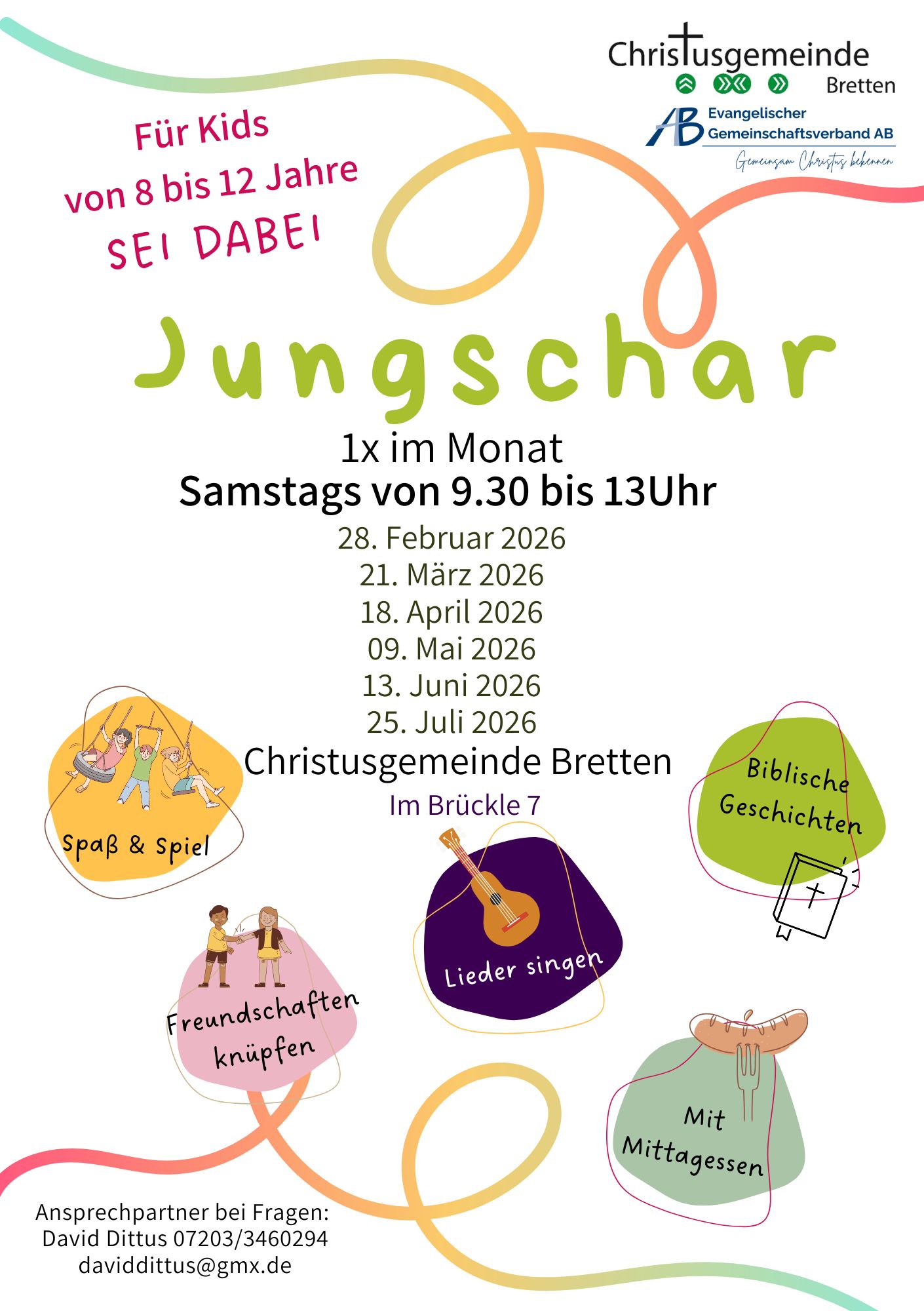Die Christusgemeinde Bretten ist eine junge, evangelische Gemeinde, welche zum Evangelischen Gemeinschaftsverband AB gehört. Für Jung und Alt bieten wir zahlreiche Gelegenheiten, mehr über den christlichen Glauben zu erfahren.